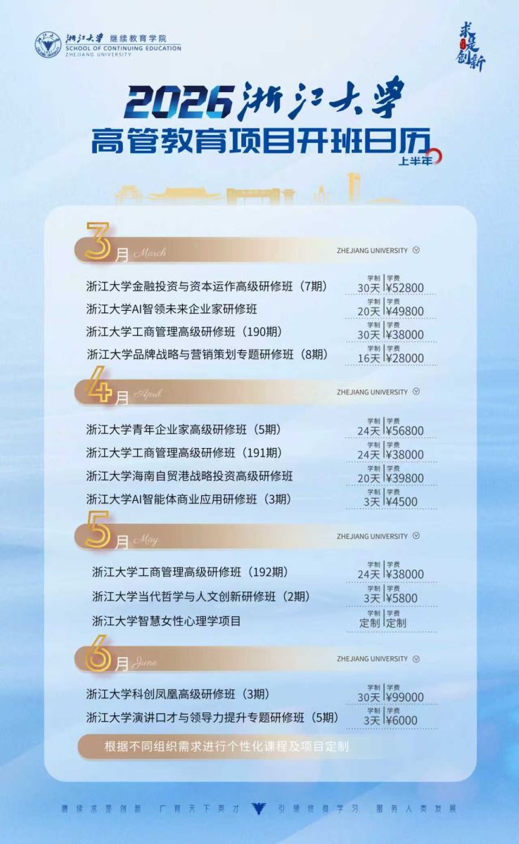 浙江大学继续教育学院2026年企业家学习计划